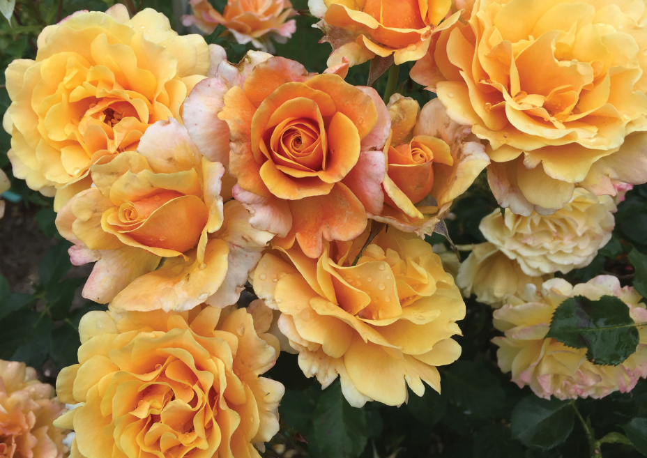 | Colour | Starts as rich golden-yellow with apricot hints, deepening or adding pink/peach tones as flowers age or weather changes. |